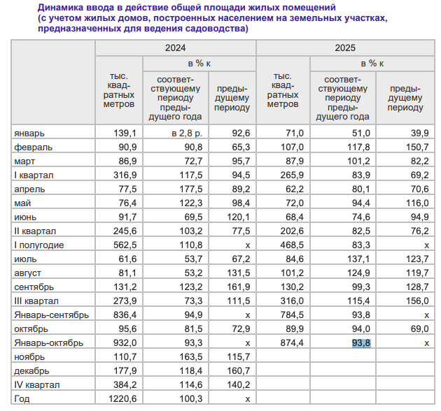 В октябре 2025 года в регионе было введено в эксплуатацию 89,9 тыс. кв. м (–6 % к показателю аналогичного периода прошлого года).