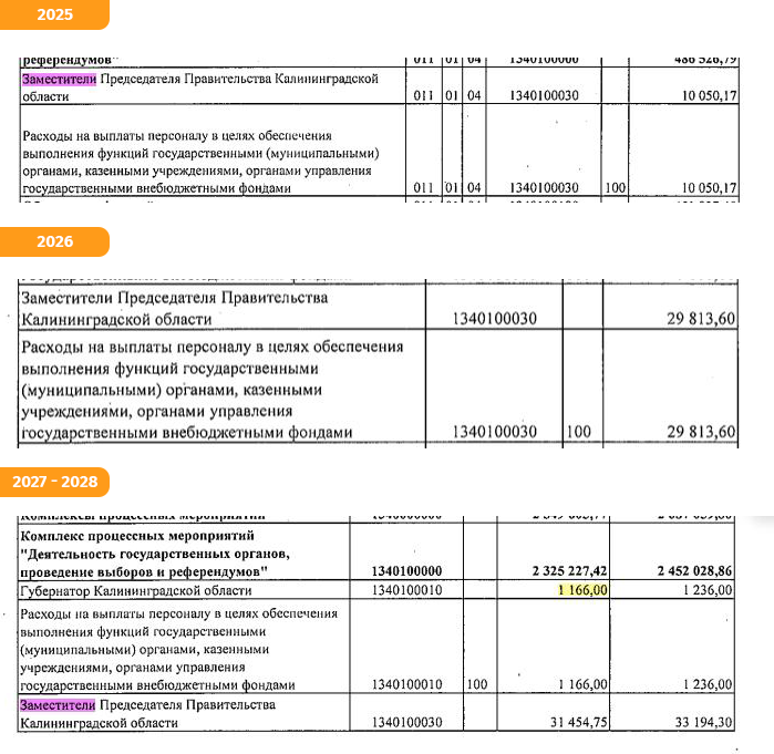 Расходы на содержание заместителей председателя правительства Калининградской области вырастут практически в 3 раза. Соответствующие данные отражены в проекте регионального бюджета на 2026 год и плановый период 2027–2028 годов.