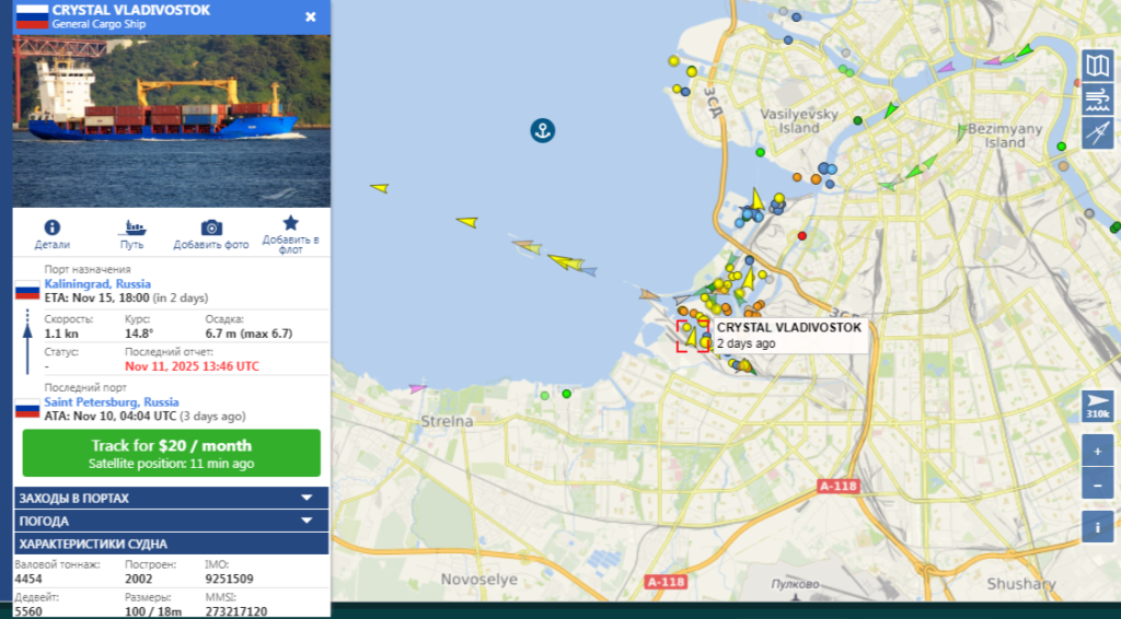 В октябре RUGRAD писал, что новое судно компании-перевозчика «Балт Гафт Шиппинг» Crystal Vladivostok проходит Красное море и приближается к Суэцкому каналу. 11 октября оно вышло из порта Мундра в Индии. Под российской юрисдикцией контейнеровоз 2002 года постройки ходит только с 2019 года. Как минимум до 2023 года судно работало преимущественно на Дальнем Востоке.
