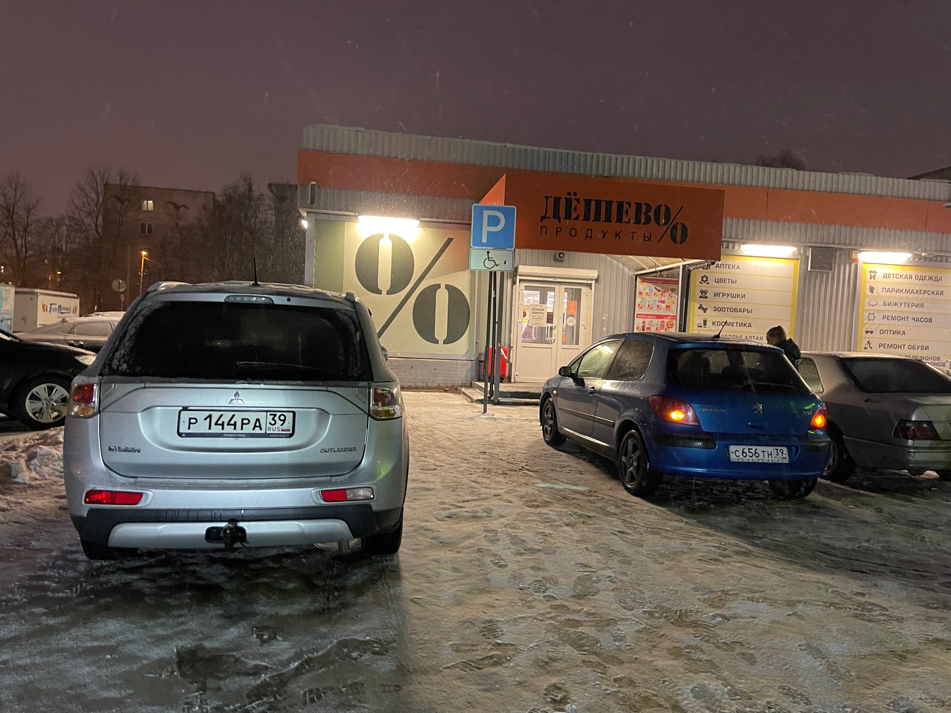 И снова парковочные места для инвалидов были заняты теми, кто не имеет права ставить свои авто на данную парковку. Водитель Мицубиси Р 144 РА/39 и дама на Пежо С 656 ТН/39 совсем не обратили внимания на соответствующий знак. Может пора на пересдачу ПДД? Как с совестью, господа?