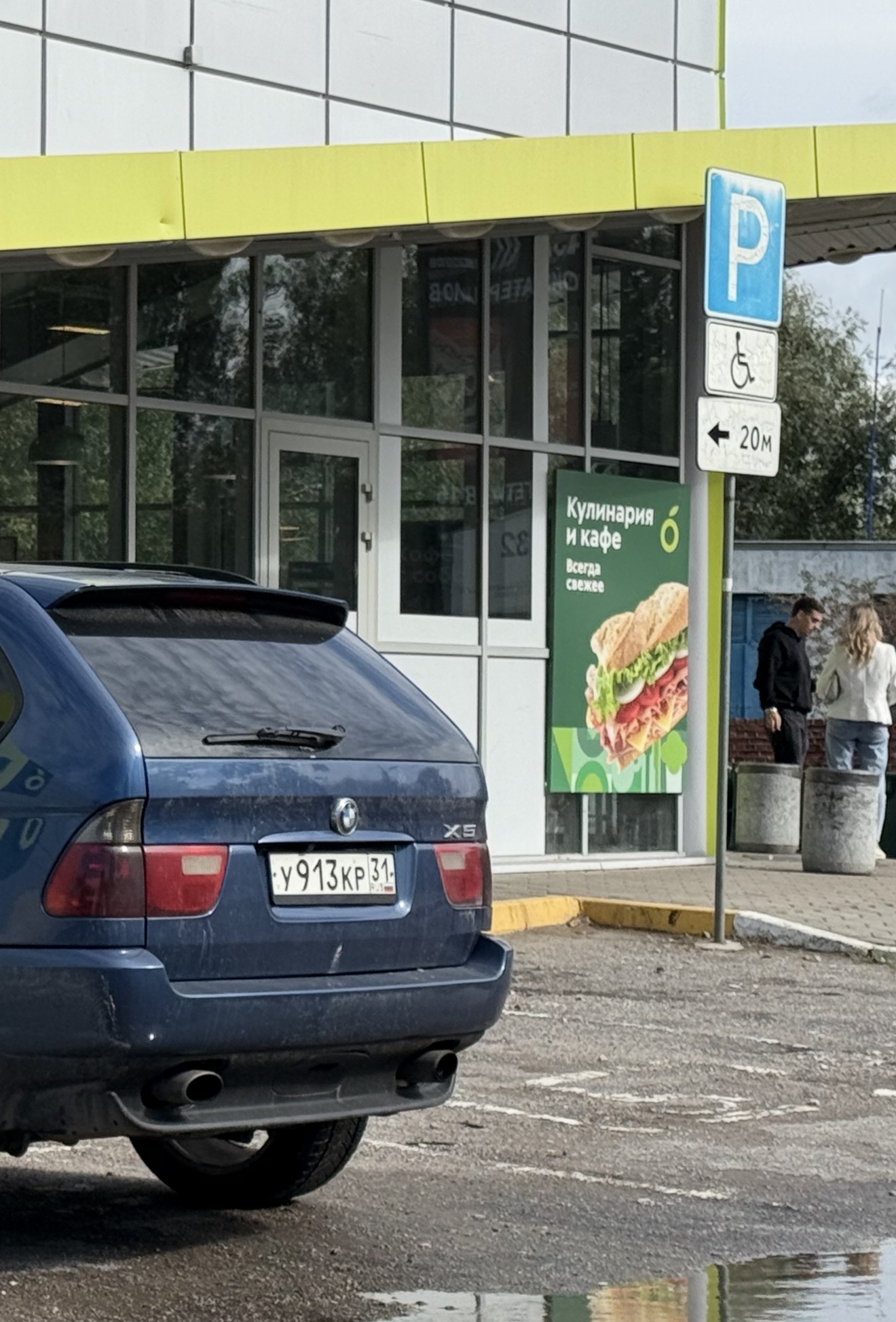 Ул. Подполковника Емельянова. ТЦ «Пятерочка». Парковочное место для инвалида занял водитель БМВ У 913 КР/31.