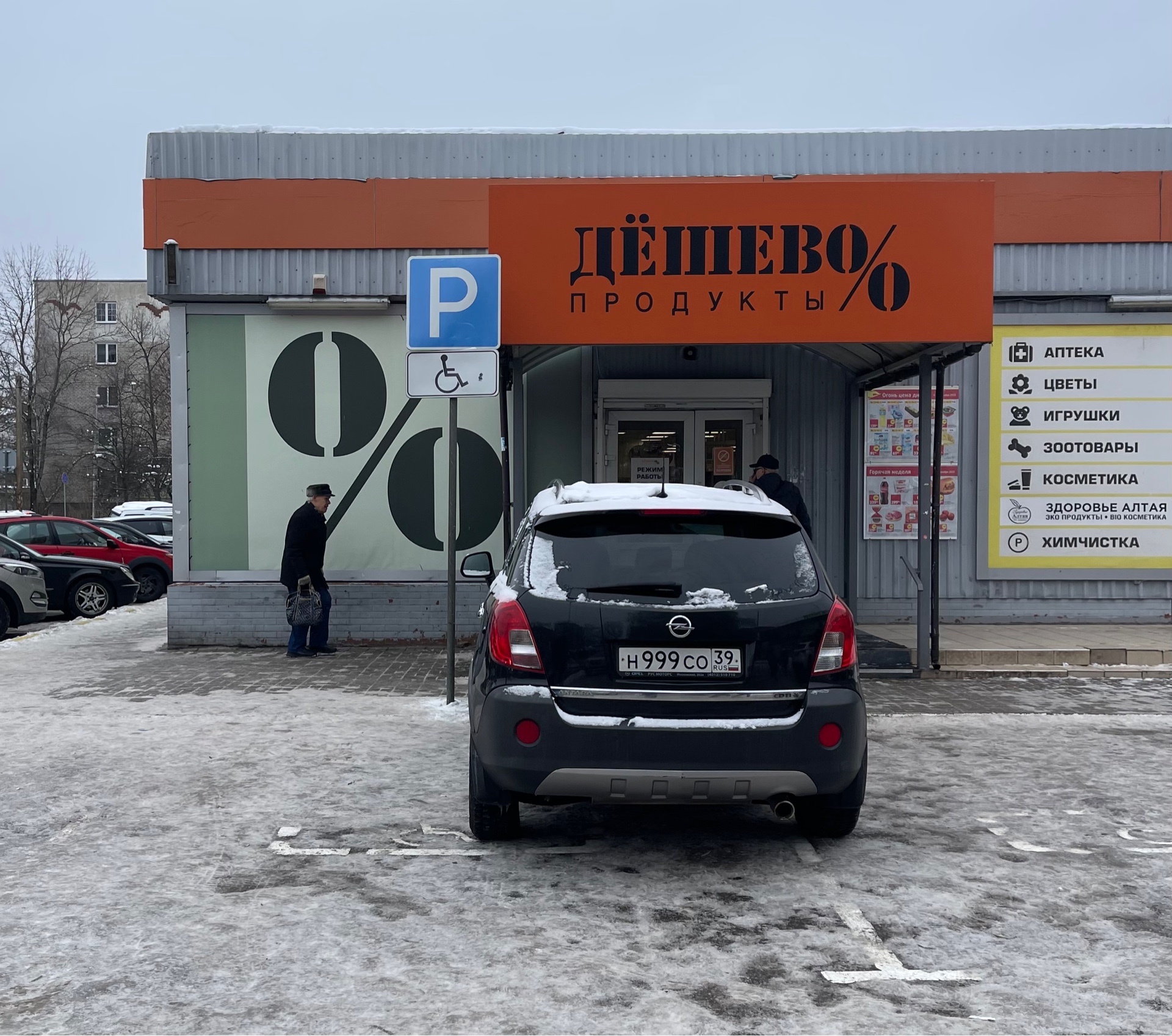 У магазина на ул. Куйбышева на парковочном месте для инвалидов парковались моральные «инвалиды». Водителю Опеля Н 999 СО/39 удобно. Была бы возможность, наверняка бы подобные прямо в магазин заезжали бы. Господа из ГИБДД обратите внимание.