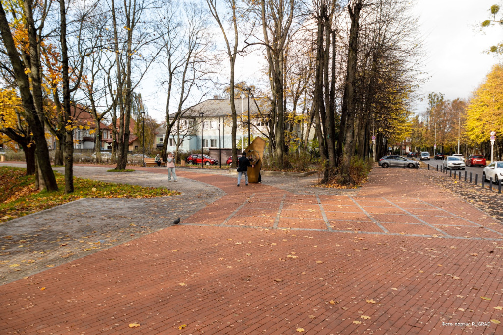 Небольшим пятачком ровно год занималась калининградская компания «Техстрой Проект» Майи Середохиной за 24 млн руб. Подрядчик перекопал весь кусок парка, поднял огромные объемы грунта, завез и использовал внушительное количество стройматериалов для такой небольшой площади, но обустроил тротуары от площади у башни «Врангель», закатал велодорожки, установил новые скамейки (правда, их совсем немного), сделал бетонную клумбу вокруг лип, а также замостил территорию трамвайных путей.