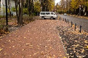 Другая велодорожка, если ехать обратно по Пролетарской в сторону торгового центра «Z Форт», буквально врезается в пешеходный переход и никуда далее не идет. Знаков о том, что это велодорожка, нет. Если же ехать на велосипеде по этой же дорожке в сторону Консульства Литвы по ул. Пролетарской, то она не заворачивает в сторону Каштанового парка, а просто обрубается на переходе через ул. Госпитальную. Если дальше продолжать такой же ширины тротуар и велодорожку, то по ул. Пролетарской снова потребуется ненужная вырубка раскидистых лип.