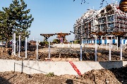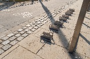 Кроме того, установлены алюминиевые крепления для велосипедов, но в некоторых местах они уже погнулись и начали ржаветь. Все недоделки, а также расположенные на территории паллеты и стройматериалы не смущают многочисленных местных жителей и гостей, которые спокойно могут пройти фактически на действующую стройплощадку.