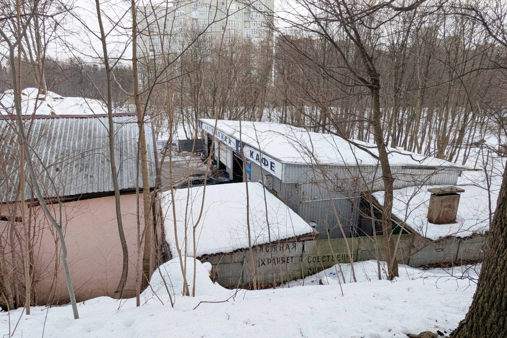 В реалиях уже 2026 года по соседству с восстанавливаемым «Грольманом» — буквально в нескольких метрах за забором — всё совершенно по-другому. Исторический памятник оказался в окружении хаоса, где время как будто бы замерло в реалиях 90-х. Фактически вокруг «Грольмана» уже много лет функционируют полноценные коммерческие объекты: офисы, автомойки, склады и магазины — все они находятся в пределах территории памятника объекта культурного наследия.