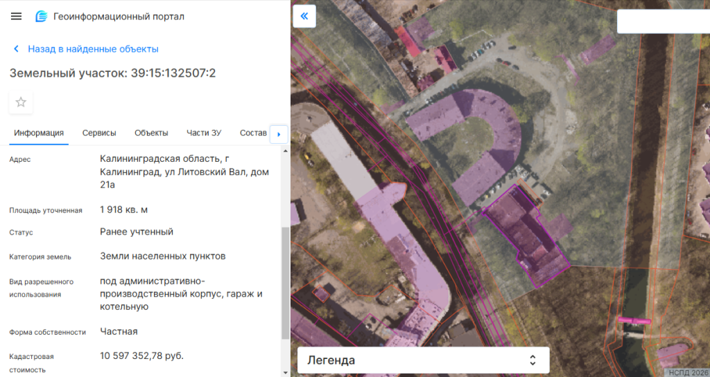 Территория к юго-востоку от бастиона «Грольман» с кадастровым номером 39:15:132507:2 на площади 1,92 тыс. кв. м по адресу Литовский вал, 21а официально разрешена под административно-производственный корпус, гараж и котельную. Владельцем участка является калининградский предприниматель Евгений Родневский.