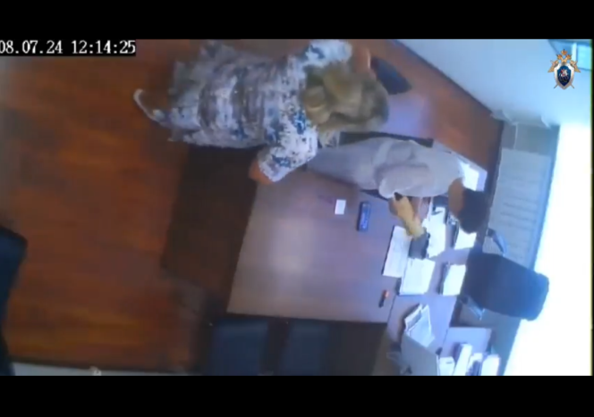 Скриншот видеозаписи из кабинета проректора Елены Мялкиной. Видео СК РФ
