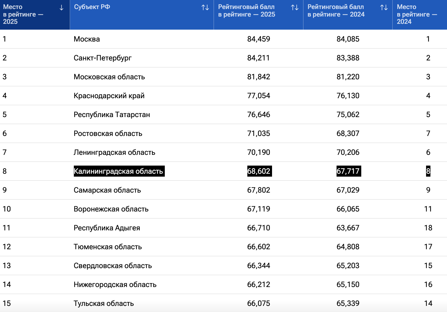 • Калининградская область заняла 41 место в итоговом рейтинге регионов РФ.