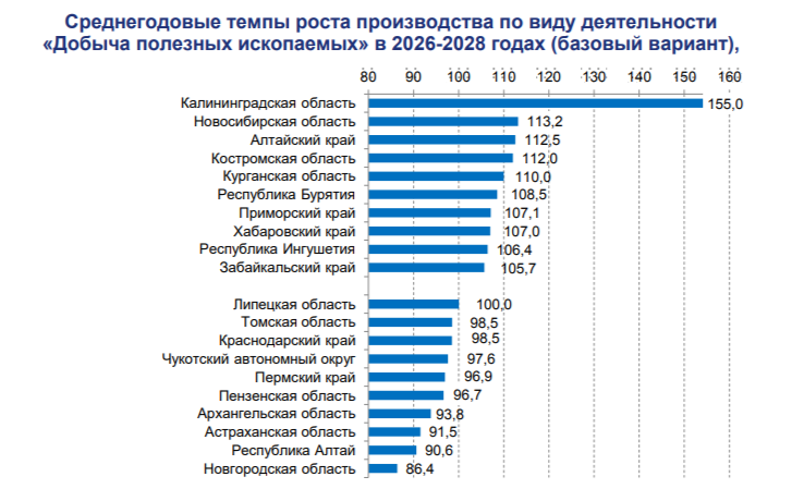 Министерство экономического развития РФ анонсировало рост добычи полезных ископаемых в Калининградской области в ближайшие 3 года. Согласно подготовленному министерством прогнозу социально-экономического развития государства на 2026 год и плановый период 2027 и 2028 годов, в регионе ожидается увеличение добычи полезных ископаемых сразу на 55 %.