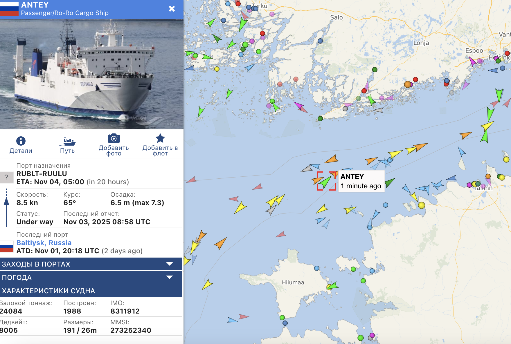 Паром «Антей» отправился в первый рейс из Балтийска в 23 часа субботы, 1 ноября. Ожидается, что судно прибудет в Усть-Лугу утром во вторник, 4 ноября, свидетельствуют данные Marinetraffic.
