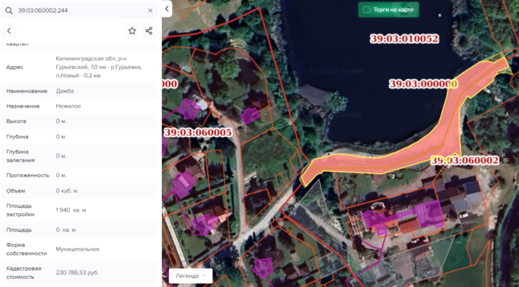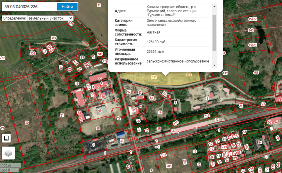 Ранее указанный участок на ул. Гранитной рядом со станцией «Гурьевск-Новый» выставляли на продажу на сайте объявлений за 29 млн руб. при кадастровой стоимости всего 126 тыс. руб. Согласно ЕГРН, земля находится в собственности Армена Баляна с мая 2021 года. С сентября на нее был наложен сервитут.