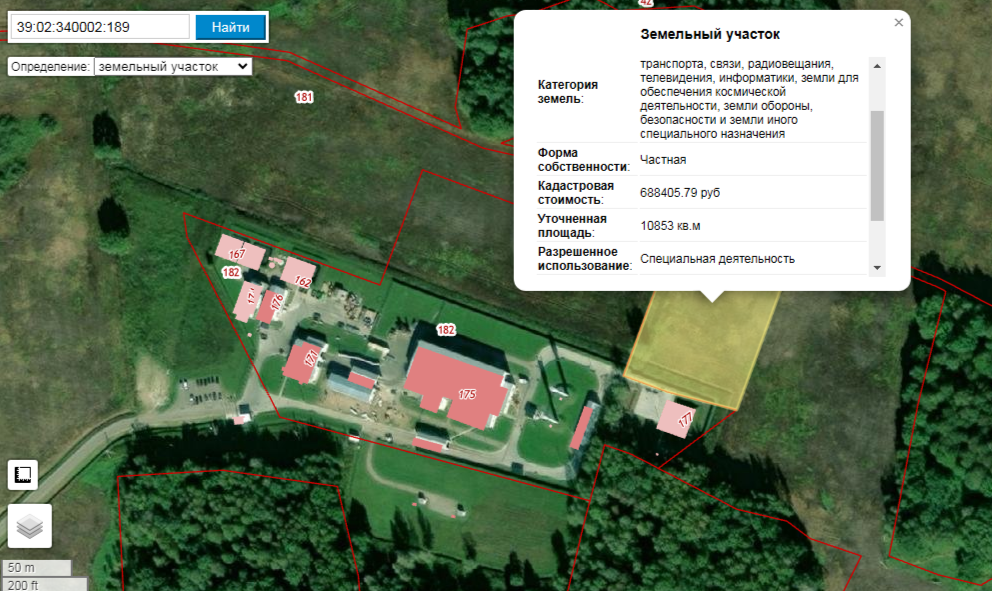 Объект появится на участке с кадастровым номером 39:02:340002:189 площадью 1,08 га. Земля была отмежевана только 22 апреля 2025 года, ее вид разрешенного использования изменен со «специальной деятельности» на «производственную деятельность». Кадастровая стоимость выросла в 4 раза до 2,6 млн руб.