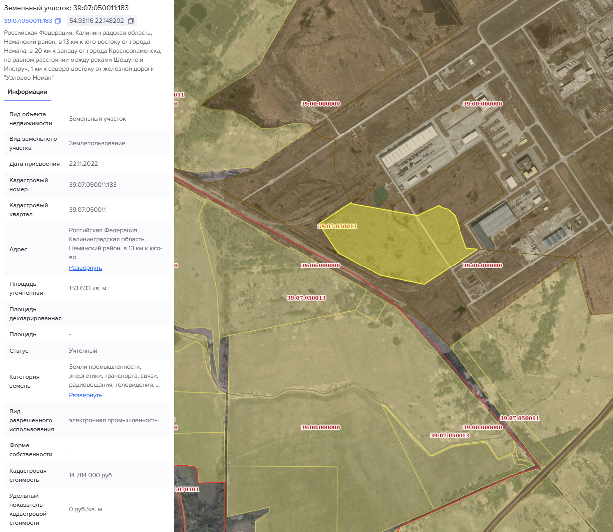 Подключаемый объект — гигафабрика по производству литий-ионных батарей — расположен на земельном участке с кадастровым номером 39:07:050011:183 в Неманском районе. Территория площадью 15,36 га и кадастровой стоимостью 14,7 млн руб. имеет вид разрешенного использования под электронную промышленность.
