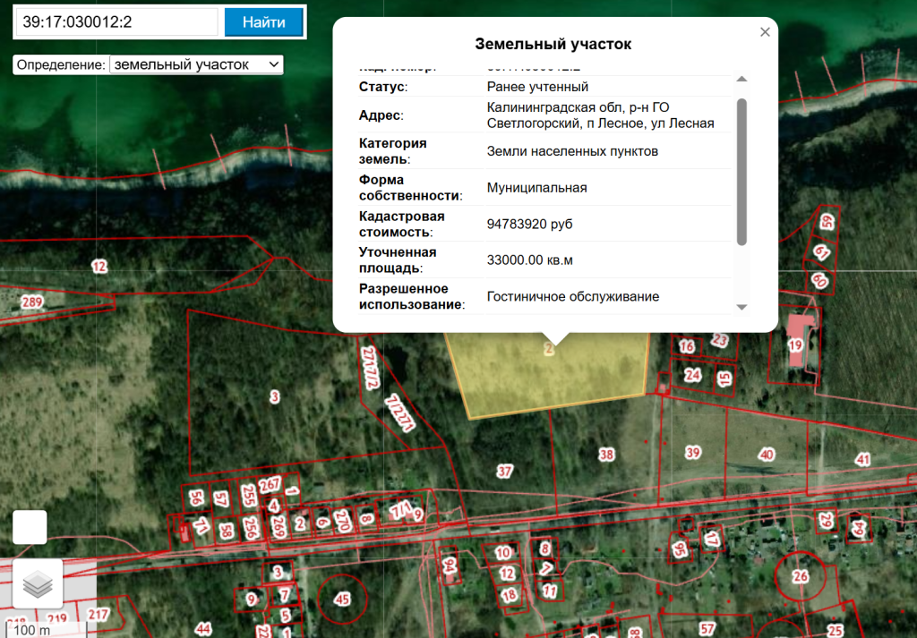 Согласно ЕГРН, участок компании «Балтик Бриз» в Лесном 39:17:030012:2 существует с 2007 года и находится в муниципальной собственности. В аренду «Балтик Бризу» массив был сдан в 2024 году. Кадастровая стоимость приморской земли превышает 94,7 млн руб. Вид разрешенного использования недавно был изменен с «размещения объектов (территорий) рекреационного назначения» на «гостиничное обслуживание».