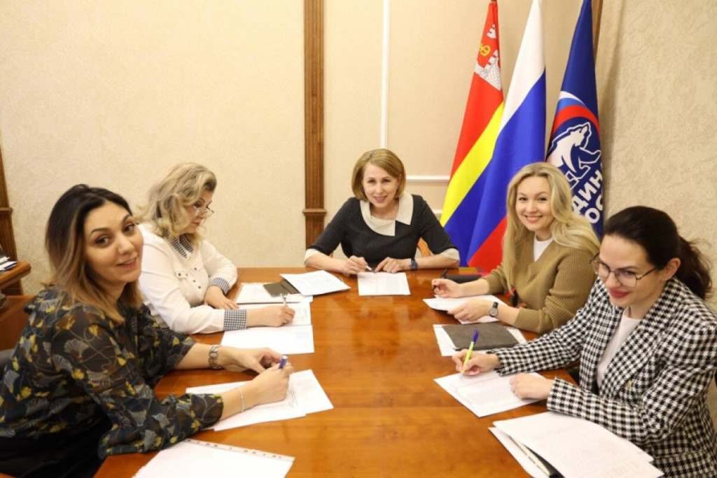 Министр Анна Мусевич вторая справа и директор ГАУ "Центр молодежи" Александра Алейникова крайняя справа. Источник: kaliningrad.er.ru