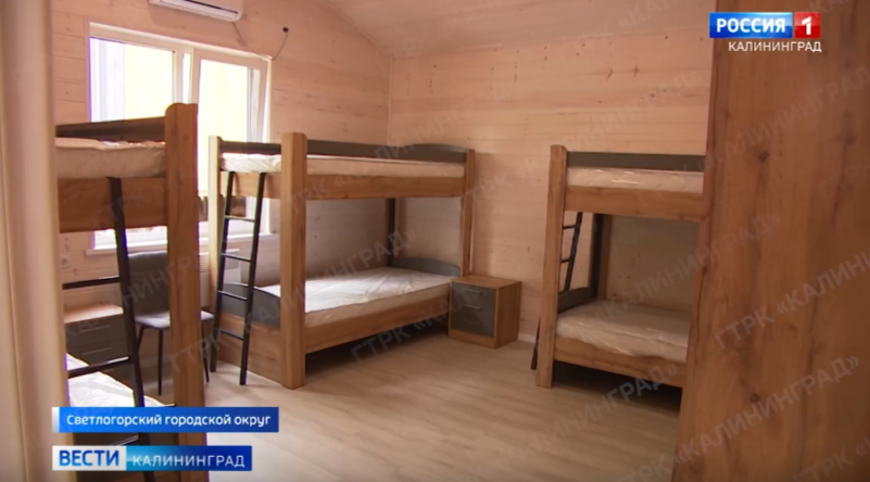 Мебель в корпусах круглогодичного центра «ШУМ» на берегу Филинской бухты. Скриншот видео "Вести.Калининград"