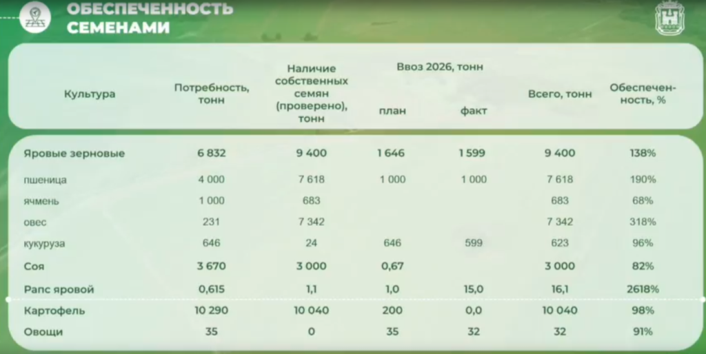 Также местным аграриям потребуется семенной материал по овощной группе. Собственных семян овощей в регионе нет. Потребность по данной категории оценивается в 35 тонн. По данным минсельхоза, в область уже было поставлено порядка 32 тонн.