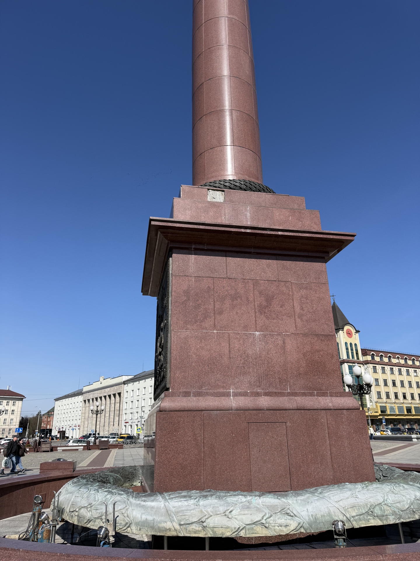 Пользователи RUGRAD неоднократно отмечали, что вся тротуарная плитка в центре города вокруг Триумфальной колонны находится в трещинах. В этом году с самой колонны оторвался кусок облицовочной плитки.