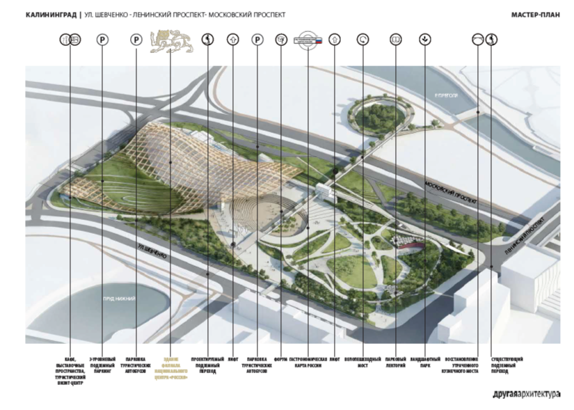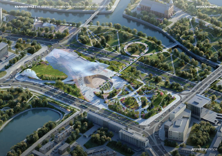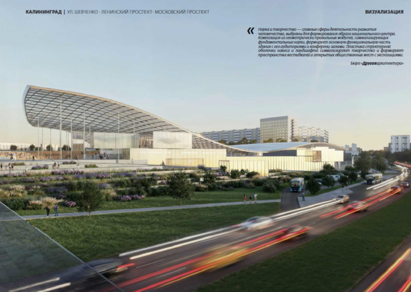 Губернатор Алексей Беспрозванных 30 марта в Москве на площадке национального центра «Россия» заявил, что на территории 12 га, где ранее располагался Дом Советов в Калининграде, планируется построить филиал национального центра «Россия» как символа общественного и культурного ядра региона. Площадь здания выставочного центра заявлялась на уровне 47 тыс. кв. м. Эскизный проект с момента презентации в Москве никак не обсуждался публично в региональном общественно-политическом пространстве и не был открыто и официально представлен общественности.
