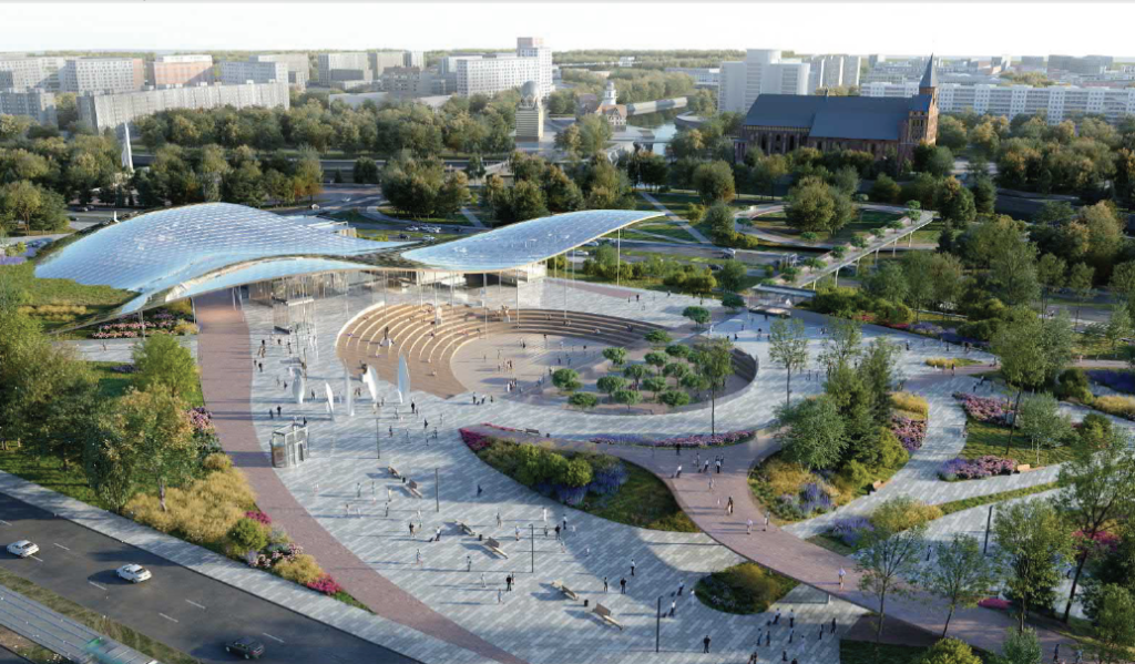 Основную территорию в проекте на месте Дома Советов занимает ландшафтный парк, на него приходится порядка 84 %. 12 % территории займет филиал наццентра «Россия», оставшаяся часть — под организацию общественного пространства «Форум». Концепцию проекта разрабатывало калининградское бюро «Другая архитектура», связанное с бывшим членом градсовета Владимиром Панифедовым и занимавшееся проектом благоустройства острова Канта. Для филиала наццентра предусмотрен паркинг на 900 мест, концертный зал на 1,5 тыс. человек и пространство под экспозиции. Жилая и коммерческая функции в концепции «Другой архитектуры» не предусмотрена. Таким образом, новый проект полностью игнорирует концепцию питерского бюро «Студия 44» Никиты Явейна, которая предполагала размещение в центральной части сразу 5 паркингов, офисного центра, гостиниц и апартаментов. От проекта отказались еще при губернаторе Антоне Алиханове. Тогда он впервые озвучил идею организовать на месте Дома Советов ландшафтный парк вместо коммерческой застройки.