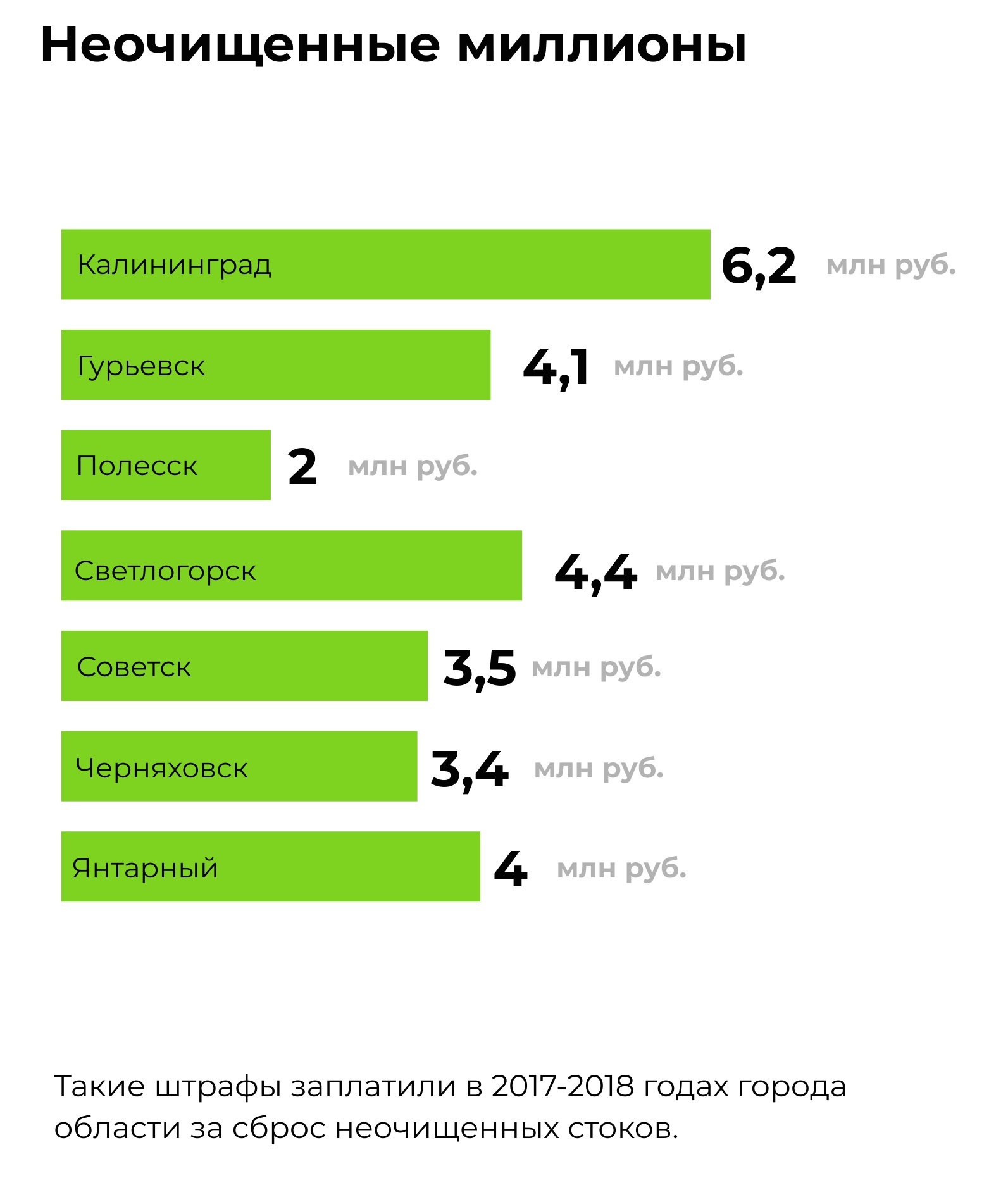 Мы брали анализы на выходе из очистных сооружений - того, что непосредственно попадает в калининградские водоемы и сравнивали с предельно допустимыми нормами загрязненности воды, которые