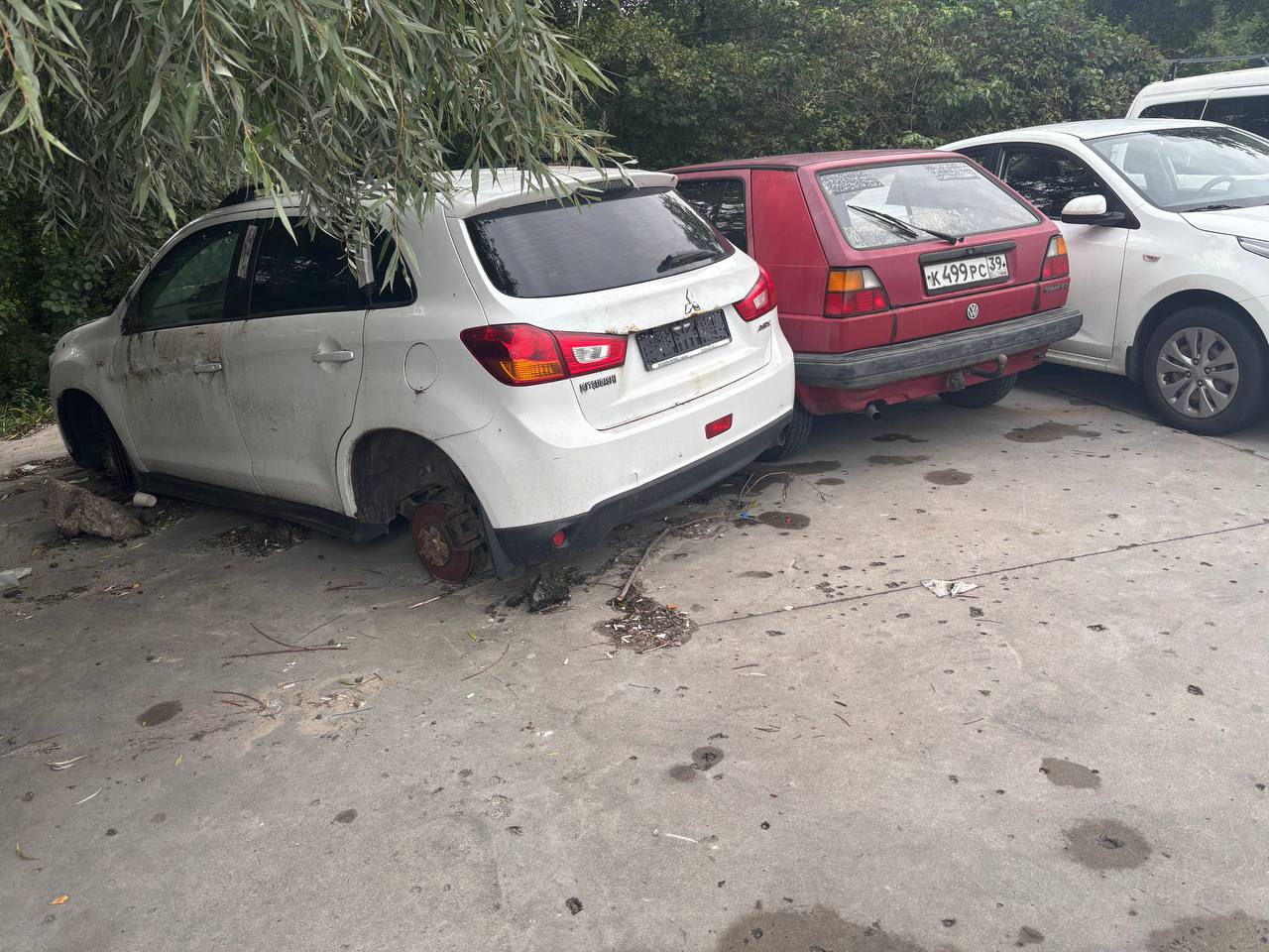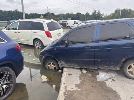 Гостевая парковка аэропорта Храброво выглядит так. Машины уже ржавые и со скрученными колёсами. Некоторые стоят в воде.