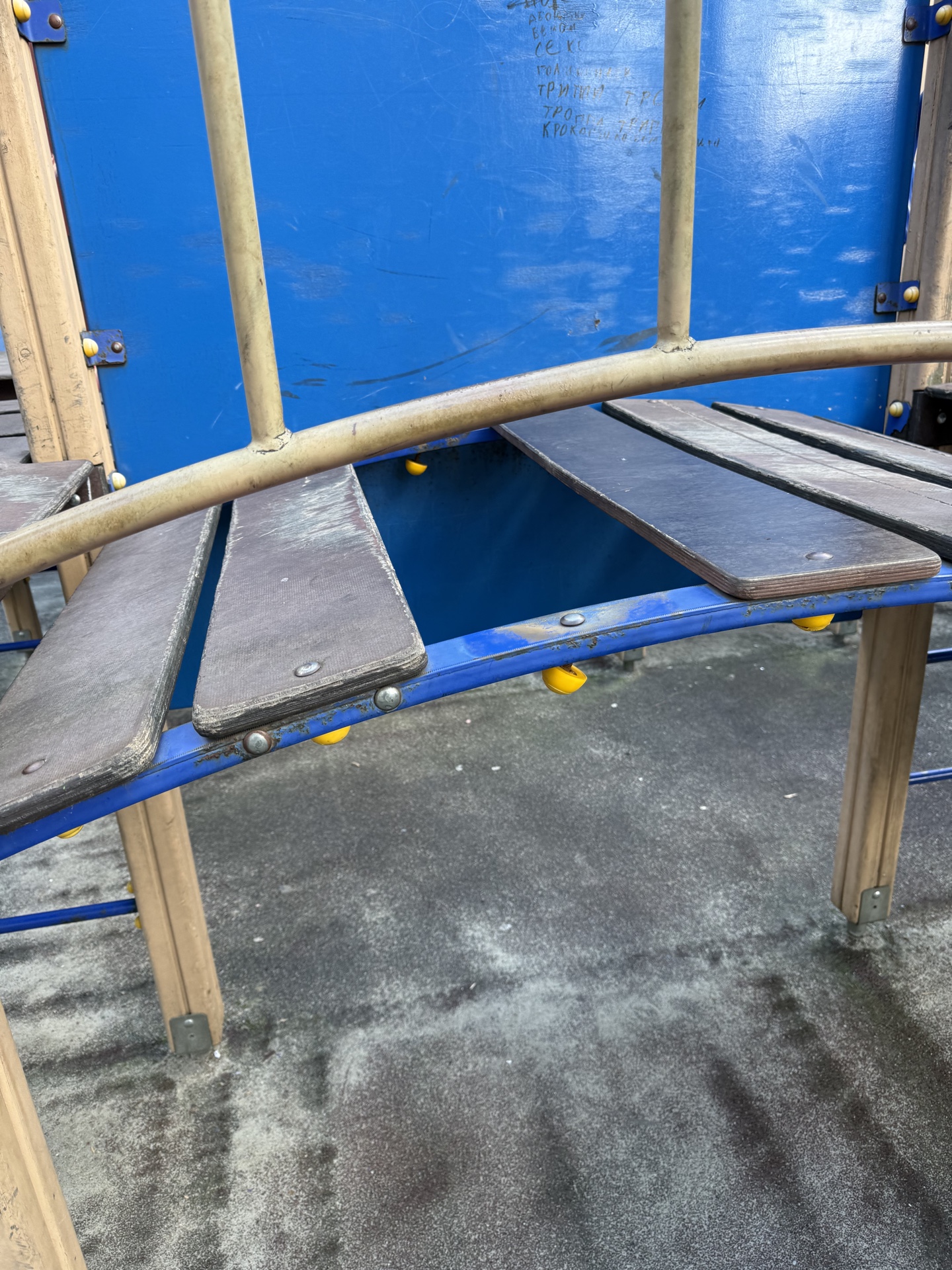 Как видно на данной детской площадке отсутствует универсальный набор оборудования, обеспечивающий одинаковый уровень доступности для всех детей, включая ребят с особенностями физического и ментального развития.