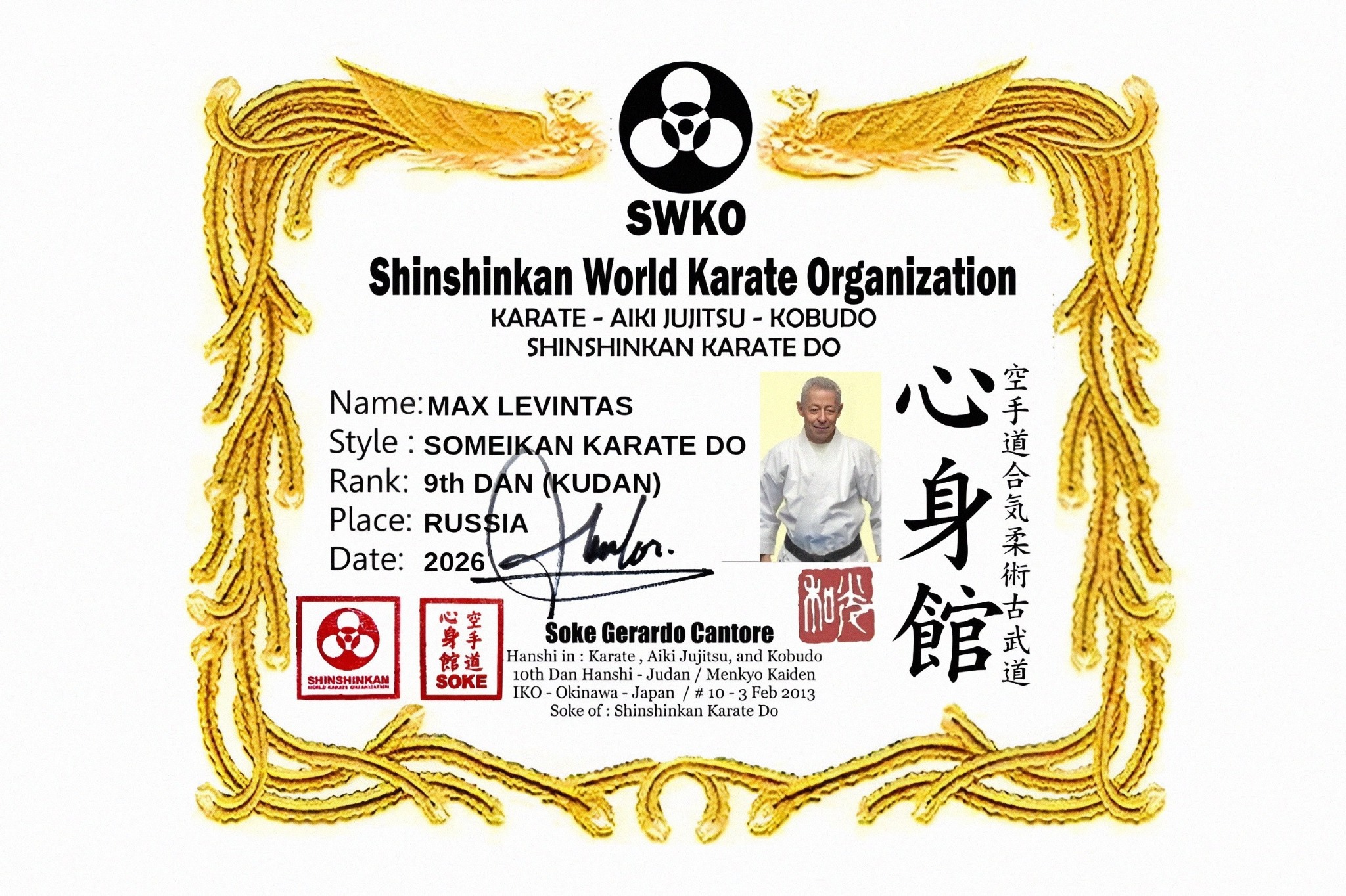 30 марта 2026 года Всемирная организация каратэ Шиншинкан присвоила калининградскому мастеру Максу Левинтасу высокий 9-й Дан — это один из самых почётных уровней в каратэ. В России это второй человек, получивший 9-й Дан карате.