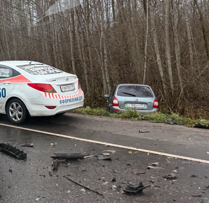 Южный обход, утро. Лада Калина в кювете, микроавтобус и Пассат на дороге. Тройничёк.