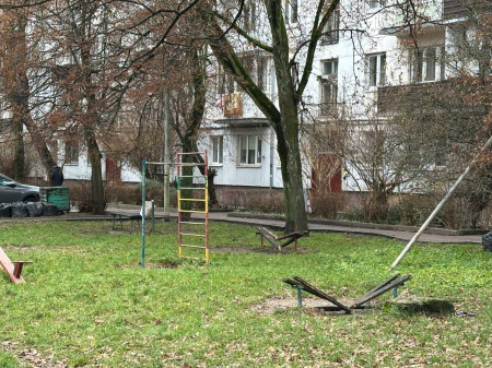 А во дворе вот такое благоустройство, вернее то, что от него осталось. Вандалы в одну ночь сломали жалкие скамейки, и те вторую неделю стоят в таком виде как символ того, что в Калининграде никому и ничего не нужно. Только показуха в пабликах.