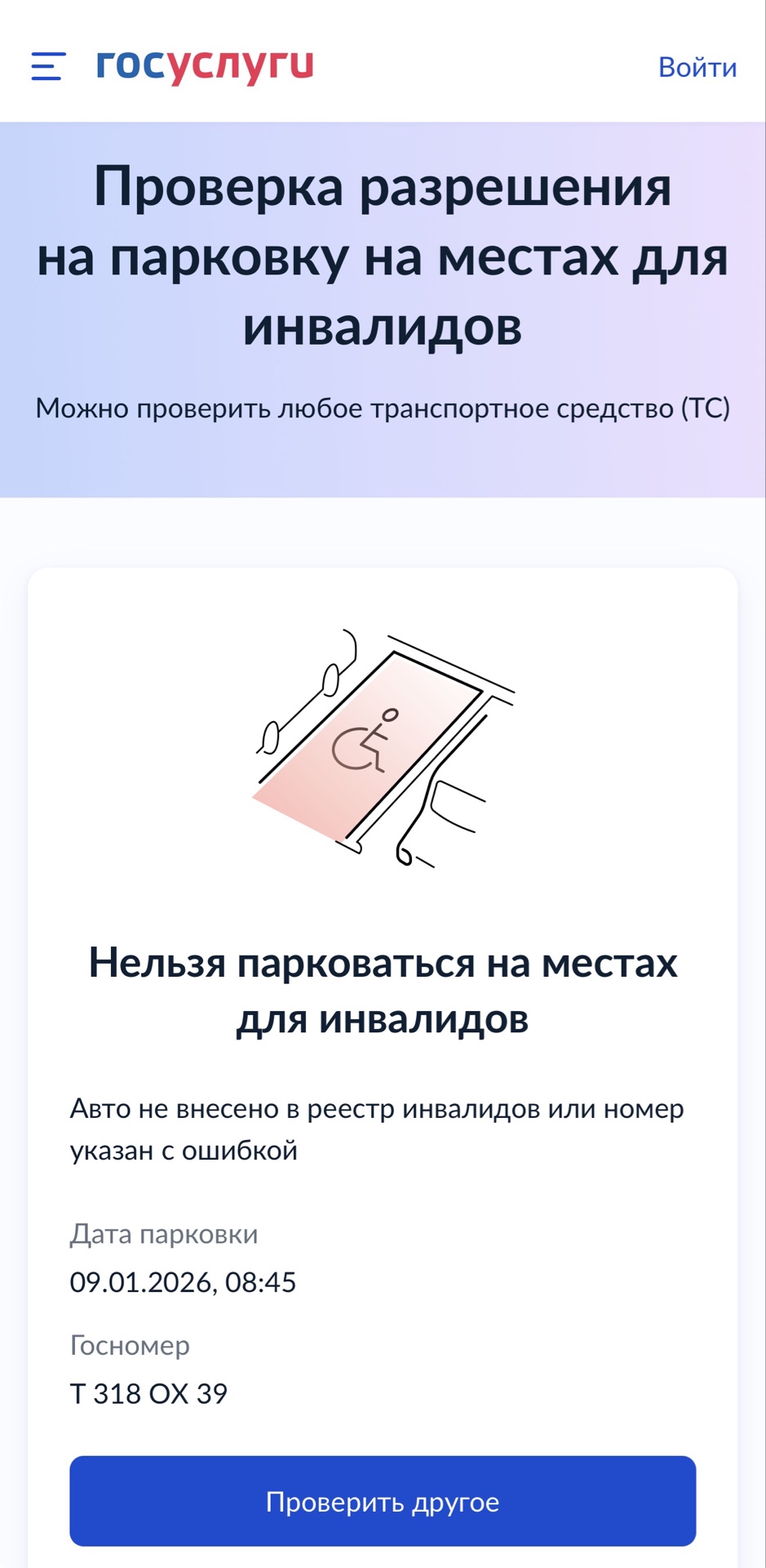Парковочное место для инвалида занято водителем "китайца" Т 318 ОХ/39. Может со зрением что-то и табличку не заметил?