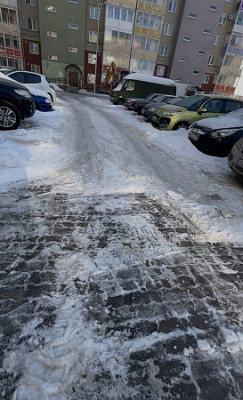 Управляющая компания решила при помощи трактора убрать с проезжей части автостоянки снег и лёд. Вот только возникает вопрос, почему это нельзя было сделать до заморозков. Лёд на дороге сантиметров десять и убирать его проблематично. Да ещё не все автомобилисты убрали свои авто.