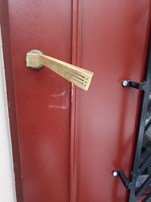 На пр-те Мира (дома 73–75) жильцы обнаружили, что на новых дверях оторваны ручки, а сами двери повреждены. Вандалы, скорее всего, использовали палку — она осталась сломанной на месте. Два года назад здесь отремонтировали фасад и поставили новые двери. Теперь их испортили.