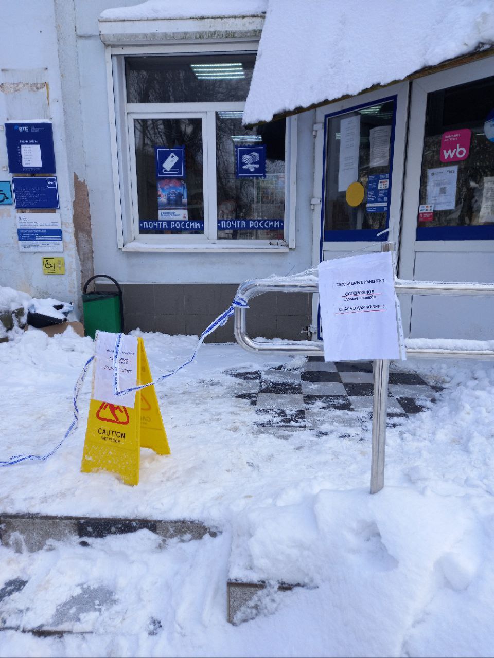 19/2/26: В Пионерском обвалился козырек над входом в здание почты.