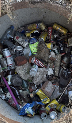 Это канализационный люк до верху наполненный мусором. Ранее просто люк был прикрыт решеткой и «добропорядочные» горожане его наполняли продуктами своей жизнедеятельности.