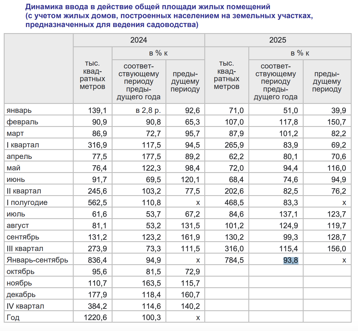 В январе – сентябре 2025 года в Калининградской области ввели в эксплуатацию 3,6 тыс. жилых домов (c учетом ИЖД), или 8,1 тыс. квартир общей площадью 784,5 тыс. кв. м. Это на 6,2 % меньше показателя аналогичного периода прошлого года, свидетельствуют данные Калининградстата. Снижение ввода в эксплуатацию жилья было зафиксировано уже по итогам первого квартала 2025 года, тогда падение составило около 16 % (316,9 тыс. кв. м против 265,9 тыс. кв. м). По итогам первого полугодия снижение показателя составило 16,7 % (562,5 тыс. кв. м против 468,5 тыс. кв. м). В сентябре 2025 года в регионе было введено в эксплуатацию 130,2 тыс. кв. м (-0,7 % к показателю аналогичного периода прошлого года). При этом населением было построено 3,4 тыс. индивидуальных жилых домов общей площадью 521,2 тыс. кв. м, или 66,4 % от общего объема жилья, введенного в январе – сентябре 2025 года. Из них на предназначенных для ведения садоводства участках построено 0,9 тыс. ИЖД общей площадью 108,6 тыс. кв. м, что на 7,3 % выше уровня аналогичного периода 2024 года. ![]()