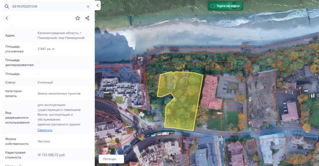 По периметру с севера будет образован участок площадью 1,9 тыс. кв. м в качестве территории общего пользования, фактически это склон за будущей гостиницей, отделяющий ее от променада и пляжа. Также появится участок площадью 157 кв. м под «предоставление коммунальных услуг» и массив площадью 162 кв. м под «стоянку автотранспорта». Еще 4 массива с назначением «охрана природных территорий» появятся в границах склона за строящимся апарт-отелем «Панорама» на ул. Комсомольской, 30. На участке «Русской промышленной компании» заявлено строительство 5-этажной гостиницы апартаментного типа общей площадью 9,12 тыс. кв. м. Из них площадь апартаментов составит 7,8 тыс. кв. м, торговых помещений и магазинов — около 1,3 тыс. кв. м. Высота гостиницы будет 20,5 метров до конька крыши. При этом проектом планировки размещение объектов социальной инфраструктуры в границах территории проекта планировки не предусмотрено В границах участка 39:19:010201:516 «Русской промышленной компании» сейчас находится советский сквер с зелеными насаждениями, бывшее здание «Горсвета» в неудовлетворительном состоянии, а также полуразрушенный павильон кафе. Территория как минимум с 2020 года огорожена строительным забором. Согласно действующим ПЗЗ Пионерского, массив относится к зоне О-1/Гр для объектов делового, общественного и коммерческого назначения. Согласно ЕГРН, собственником участка на Приморском переулке и ул. Комсомольской с июня 2020 года является ООО «Русская промышленная компания» Галины Маковской (99 %) и Владимира Маковского (1 %) — родственников экс-гендиректора «Россети Янтарь» и ПАО «Россети Центр» и бывшего депутата Облдумы Игоря Маковского. Гендиректором «Русской промышленной компанией» является экс-председатель совета депутатов Пионерского Елена Широченко. По данным сервиса проверки контрагентов Rusprofile, убыток юрлица составил за 2024 год 8,7 тыс. руб., стоимость балансовых активов сократилась на 14 % до 54 млн руб.