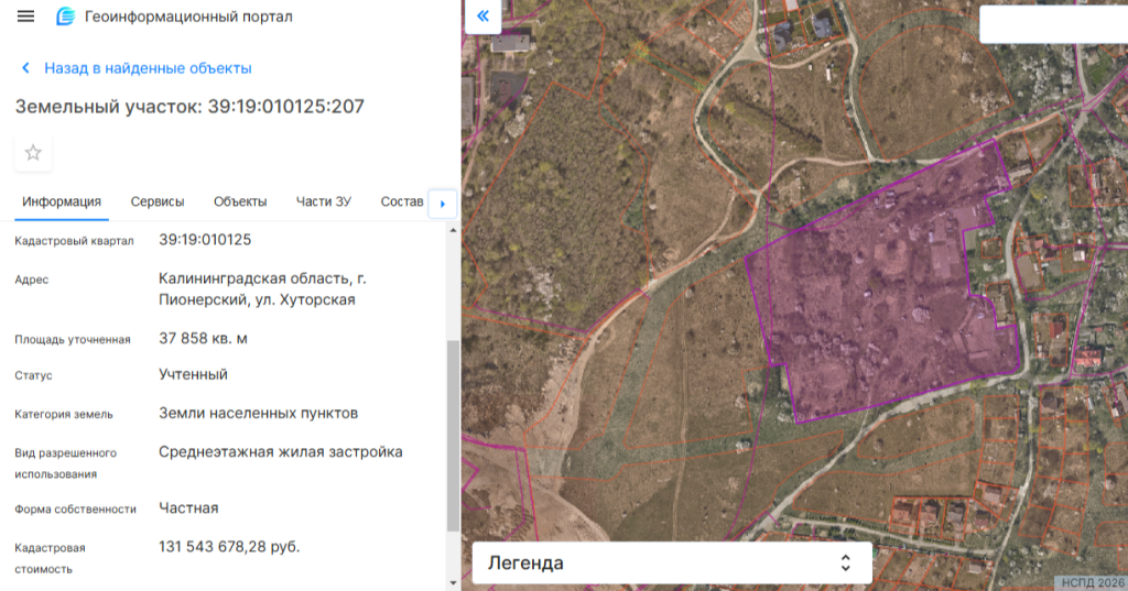 Региональное министерство градостроительной политики выдало разрешение на строительство в Рыбном квартала среднеэтажного жилья. Получателем документа является «Эссет Менеджмент Солюшнс» — московская управляющая компания закрытого ПИФа «Риал эстейт «Дельта», владеющего зданиями супермаркетов «Виктория» в регионе. Разрешение действует до 13 марта 2035 года, то есть ровно 9 лет. Это нетипичный срок, который в последнее время стало использовать региональное министерство градполитики под руководством министра и вице-премьера Кристины Подскребкиной. На участке 39:19:010125:207 площадью 3,85 га в Рыбном на границе со Светлогорском-3 будут построены дома № 2, 3, 4 в рамках I этапа строительства. Земля располагается в 400 метрах от моря и ранее была занята огородами и дачами. В июне 2025 года землю консолидировали, к этому времени все хозпостройки были снесены. Хотя по генплану Пионерского и кадастру эта земля между ул. Хуторской и ул. Рабочей от кольца была размежевана на 21 участок и предназначалась частично под ИЖД, частично под среднеэтажное строительство. В настоящее время участок относится к зоне среднеэтажной застройки. В 2025 году его огородили забором и начали зачистку территории от зеленых насаждений. Это один из немногих свободных участков в Рыбном условно на второй линии от моря. Все более-менее крупные массивы севернее и западнее уже предназначаются аналогично под застройку до 7 этажей. С восточной границы примыкают ветхие дома довоенной постройки. Новый квартал в Рыбном будет граничить с ЖК «Светлогорск-3» от «КСК» Вадима Шимко, однако территориально это Пионерский городской округ.